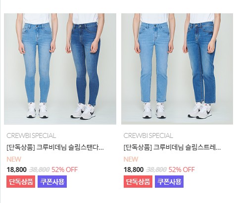 지금 크루비에서 청바지 50% 세일을 진행 중이에요.