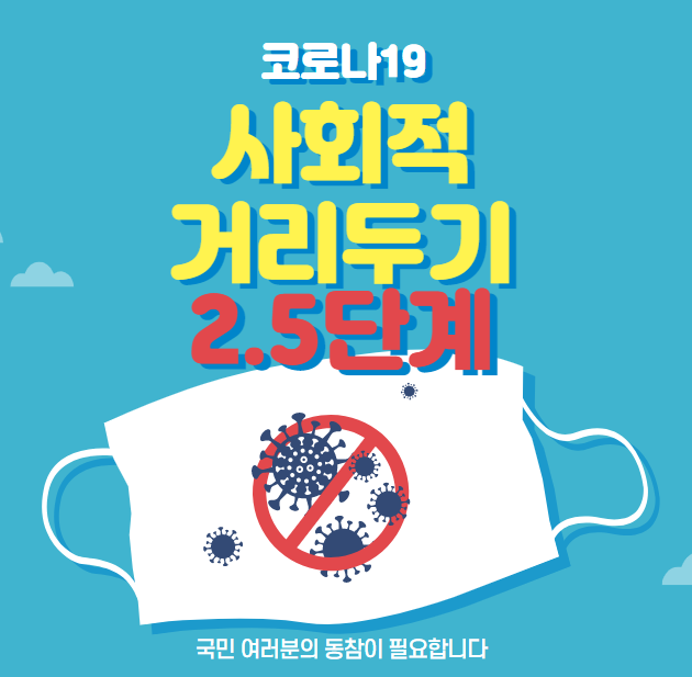 최근 정부는 사회적 거리 두기 3단계 상향 조정은 서민경제에 큰 피해를 줄 가능성이 있어서 2단계 거리 두기를 유지하기로 했습니다. 다만, 젊은 층을 중심으로 국민의 외부 활동을 최소화해 감염의 전파를 차단하기 위해 음식점, 카페, 실내체육시설에 대한 방역을 강화하도록 하였습니다. 2.5단계의 주요내용은 음식점 등 다중 이용시설의 야간 음식 금지, 300명 이하 독서실 등 다중이용시설의 집합금지 등이 있습니다.