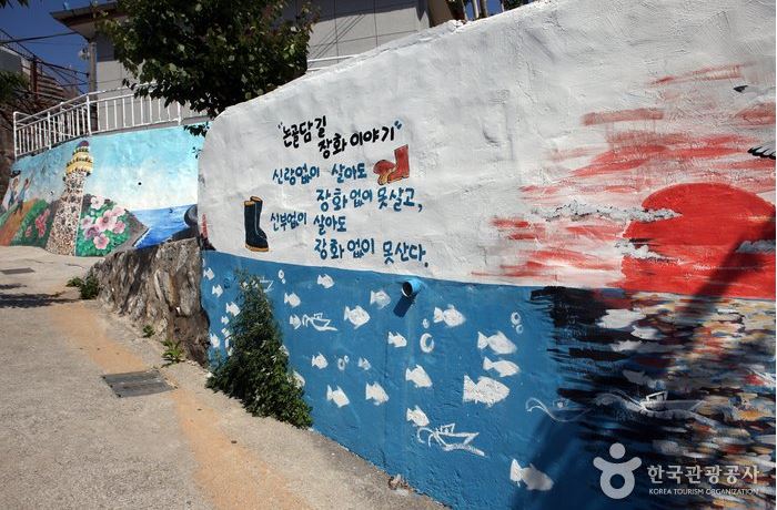 ○동해시 논골담길 - 묵호항 사람들의 삶과 애환이 담긴 벽화들이 그려진 동해 전망 산책로