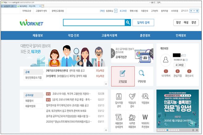 (구직신청 완료 시 워크넷 구직번호 확인 가능 )