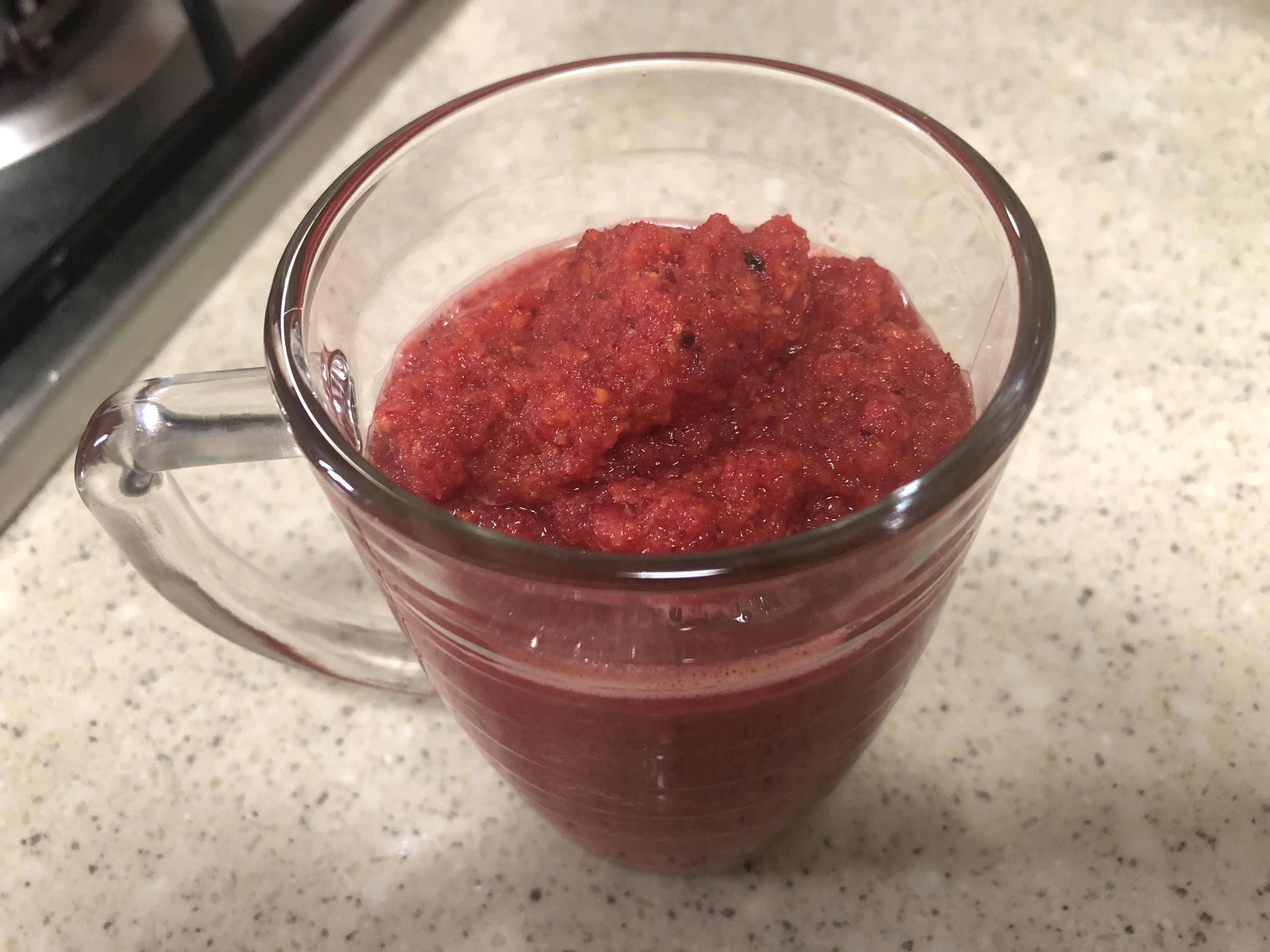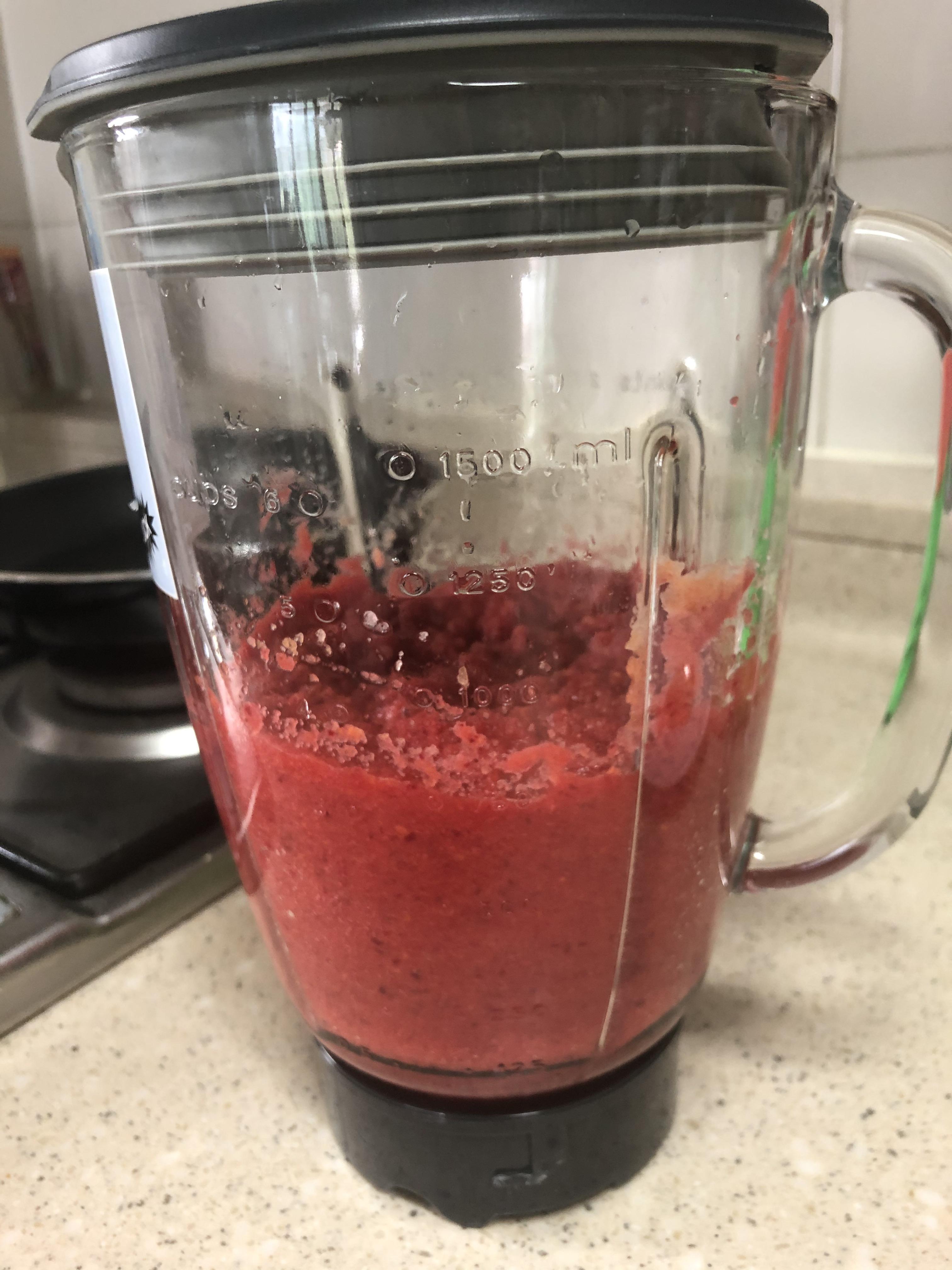 이렇게 하면 완성인데요.. 좀 덩어리가 씹히는 걸쭉한 주스가 완성된답니다~!