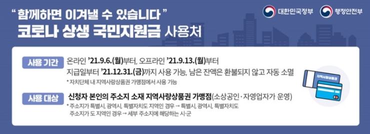 - 재난지원금 사용기간: ~2021년 12월 31일까지