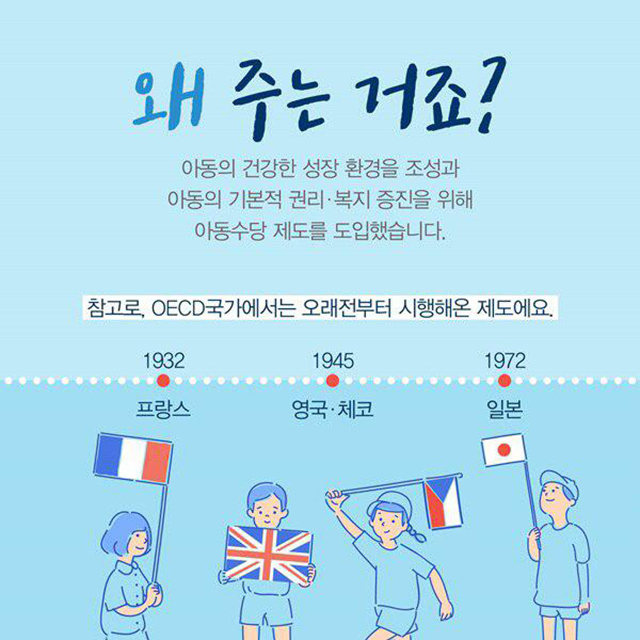 아동수당은 출산수당이 아니에요. 아동의 복지 증진을 위해 주는 거니까 꼭 받으셔야죠. ^^